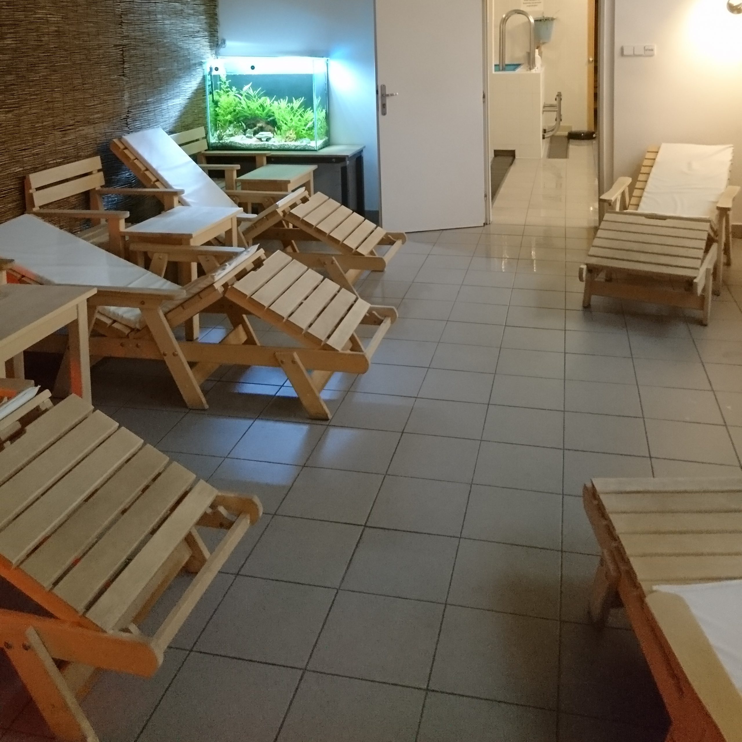 Sauna Praha 6 má dvě šatny (dámy – páni zvlášť). Dále pohodlnou a velmi prostornou prohřívárnu a odpočívárnu s krásným stylovým nábytkem, kde můžete v klidu relaxovat. V recepci si můžete při odpočinku dopřát studené i teplé pití na doplnění vypocených tekutin a minerálů.